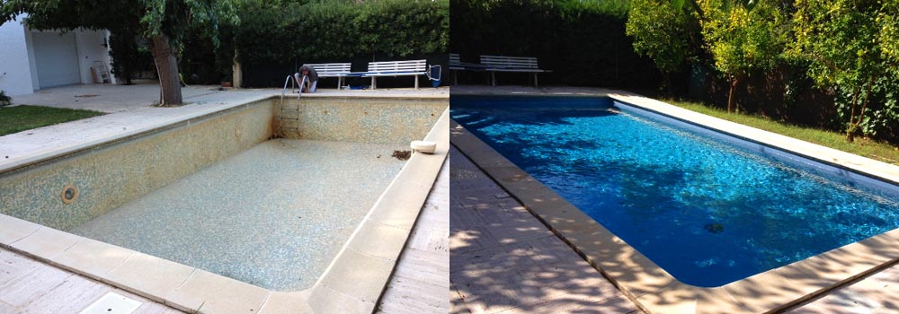 La piscine avant et après travaux de rénovation par Aqua Polyester.